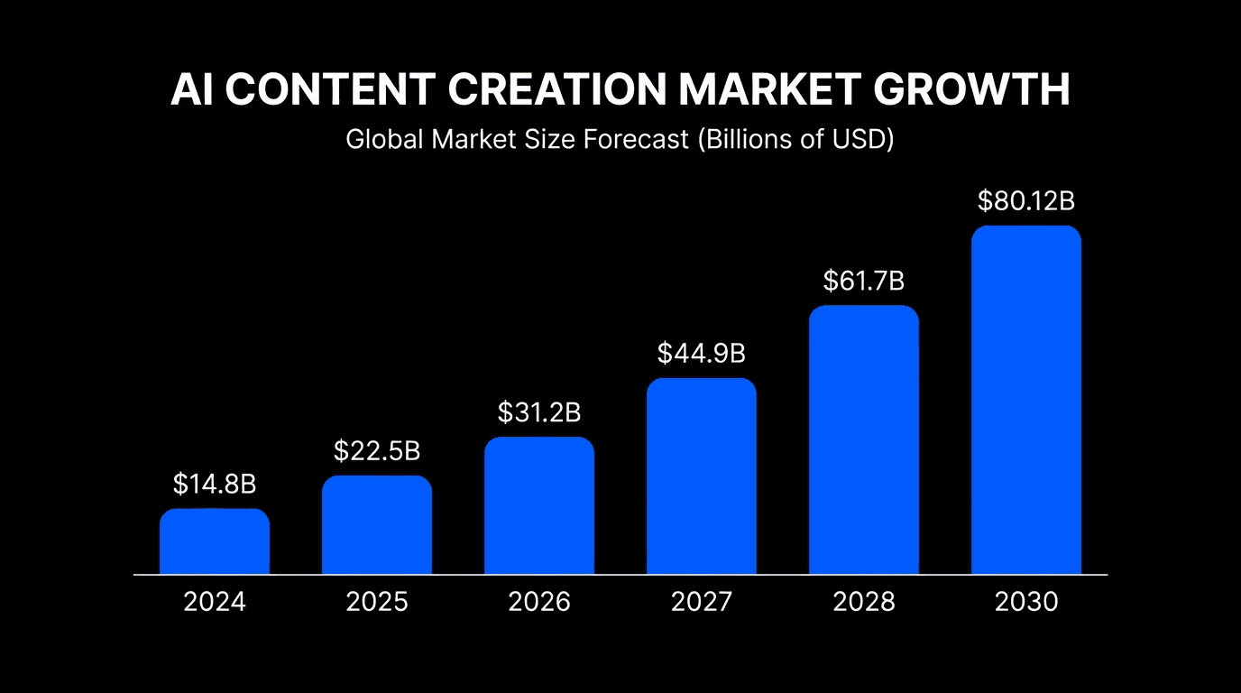 The generative AI content creation market is projected to grow from USD 14.8 billion in 2024 to USD 80.12 billion by 2030, reflecting massive investment in AI-powered content tools (Grand View Research, 2025).