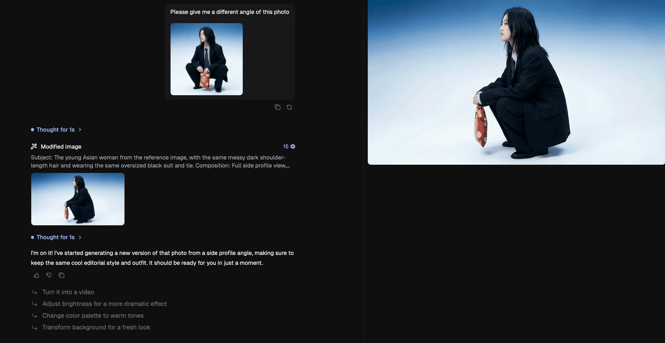 No re-uploading. No re-prompting. No starting over. Just conversation.