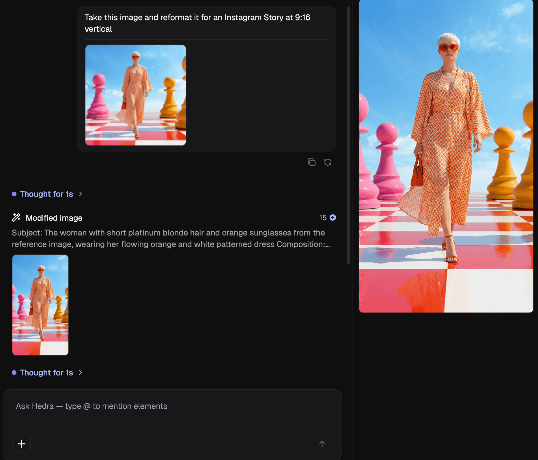 Creators can also bring inspiration to the conversation. A reference image, a mood, an ad you admire, a direction you are exploring.