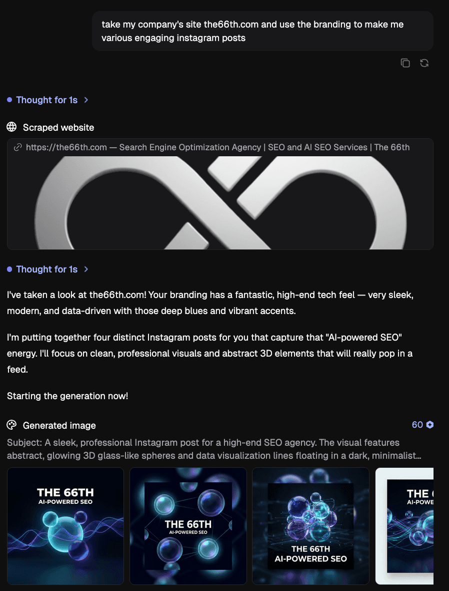 The visual identity holds because the Agent remembers the original brief and carries it through every post.